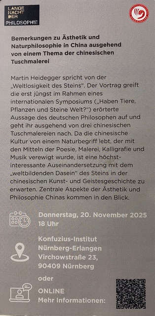 Ort: Konfuzius-Institut Nürnberg-Erlangen, Virchowstraße 23, 90409 Nürnberg oder ONLINE über Teams-Webinar. Anmeldung für die Online-Teilnahme bitte über den Link auf unserer Website.
